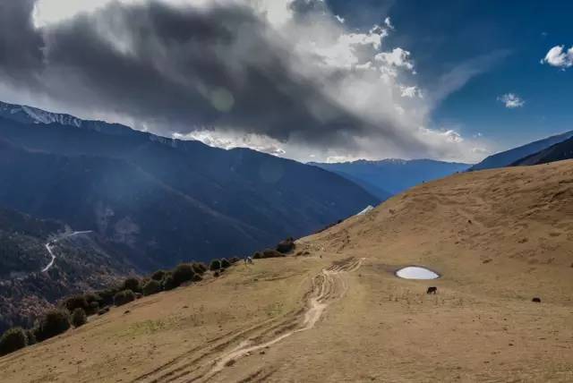 11月6日,我们熟悉线路,上到海子沟的锅庄坪。这是个包括斋戒坪、锅庄坪、朝山坪的草甸大“平台”,四周是沟是涯,远处是山。往左前方就是四位姑娘。最近的最矮的是大峰,就是我们赛事路线上要登顶的峰。草甸软软的、青黄色的,这个马上进入冬季的季节了仍显出勃勃生机。从这里俯视可以看到日隆镇的全貌,我们住的宾馆就在镇子的最后边,也是最高点。镇子不大,只有一要街,像是躺下的“U”字。远处是雪山、山坡茂密的丛林,这就是大自然,我就在大自然。