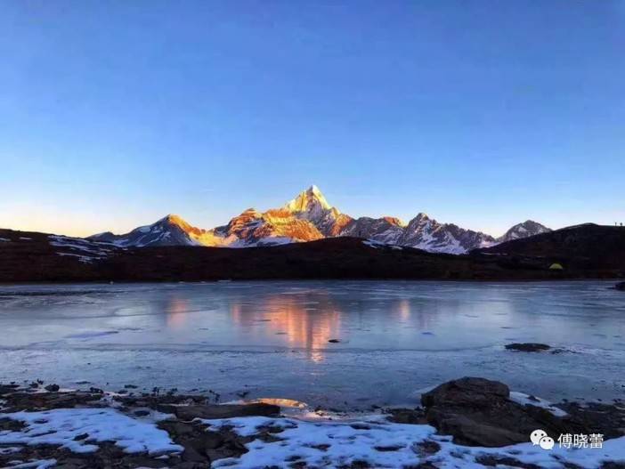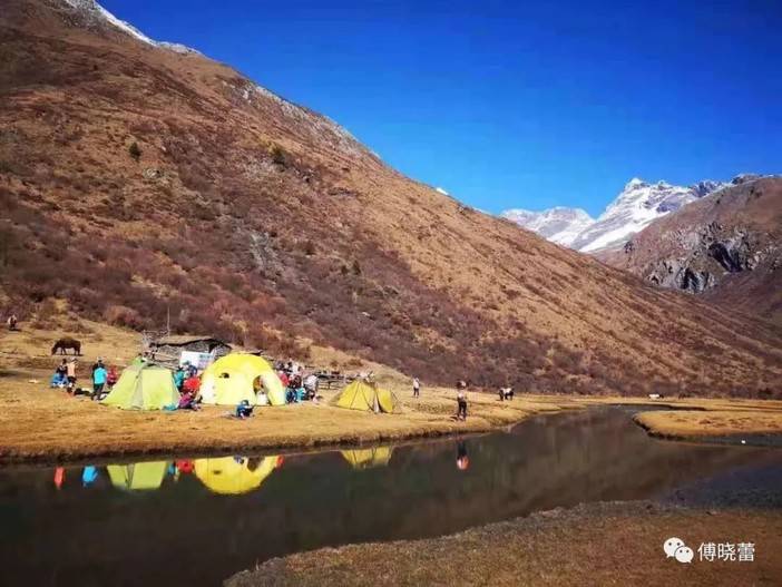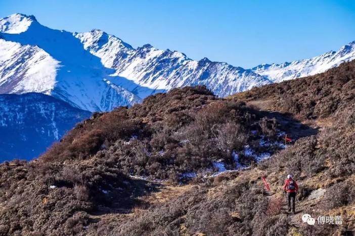 喜欢过了花海子之后,在坡上回望,看湖水随光线变幻色彩,也喜欢在中梁子、木骡子这两个视野开阔的站点观望雪山,想象山头上我不知道的故事。很多选手能走在八角棚海的日出中,欣赏幺妹峰在冰湖中披金光的倒影,这不是“正好”看到,是设计出来的时间、地点和场景。