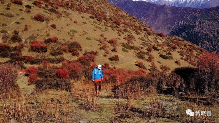 今年贡嘎100迷路的阴影立马浮上来。当时正跑过一片红石滩,冲着很远的红路标跑去,到了才发现那是石头上的铁锈红,再环顾四周,什么都没有。作为户外徒步党,很自然地拿出手机看官方轨迹,准备直接切回路线,结果怎么切都找不到路标。后来才知道,这一段组委会临时改了路线,虽然下个打卡点位置没变,但路标在隔壁山上。
