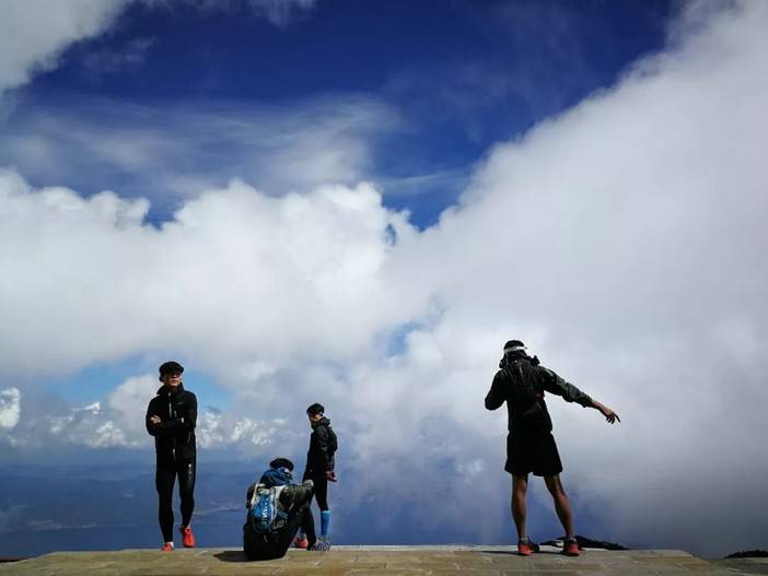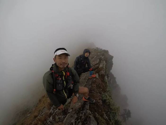 直到快到山顶的时候,才有后出发的两位60公里组别选手超过我。其中第二位,就是与古神上演“香格里拉兄弟情”的我们亲爱的“马老师”。望着他们远去的头灯,以比我快至少一倍的速度摸向山顶,羡慕!