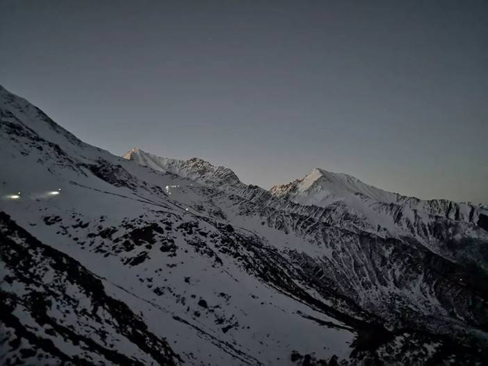 这一段约800米的爬升,后半段在雪中挣扎着向上,好像地心引力都变强了。难是真难,好在赛前我特意多次爬苍山,电视塔、黑龙潭、双龙潭、七峰……就是为了应付四姑娘山的高海拔爬升。