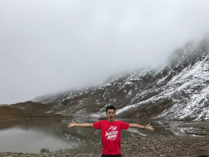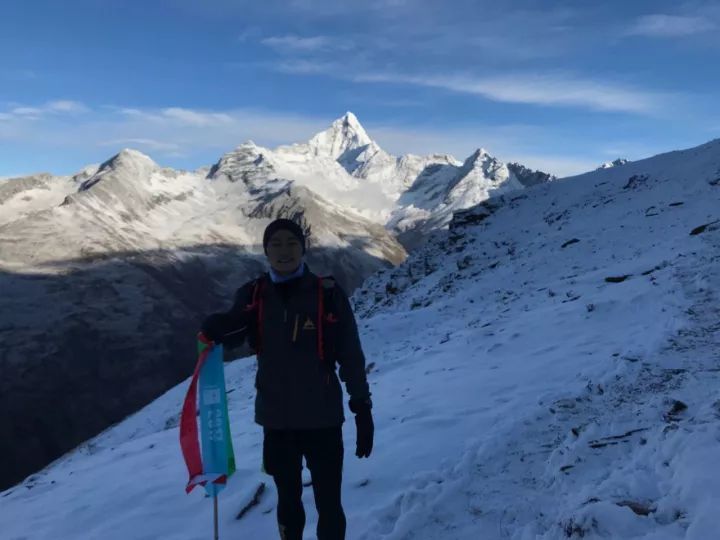 我的心情很不错,接下来慢慢熟悉了雪面,基本上可以小跑前进了,遇到稍微陡一点的下坡,也可以用屁降法快速解决,鞋子里面装满了雪,也丝毫不在乎。我感觉自己像是回到了童年的时候,想奔跑,想大喊大叫,想在雪地上打滚。哈,那真的是我跑得最快乐的一段路,虽然也滑摔了两跤,虽然脸被冻得直打抖索,嘴巴讲出来的话都变成了大舌头口音。但是我只要停下来,就可以望见对面的你们,正安静地微笑地注视着我的你们,让我感觉自己像个孩子一样,自由地奔跑。