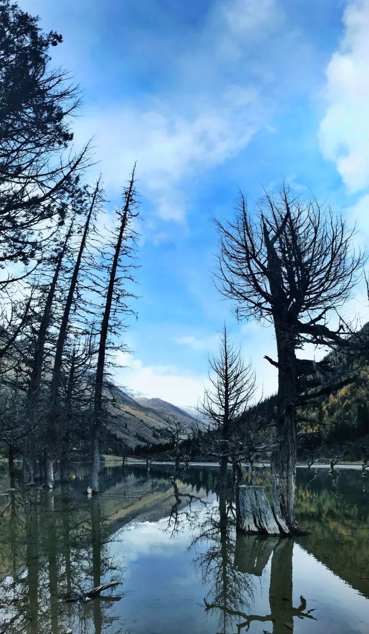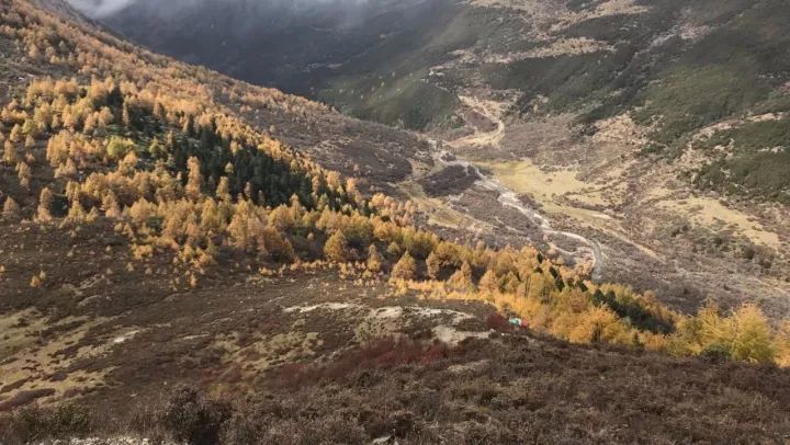 是的,我连续三天都进山拉练了,每天都徒步20公里左右,我几乎控制不住我自己,我听到山在那边呼唤我呢。山上有大片大片金黄色的红杉林,落了叶的桦树枝上布满了浅绿的松萝,彩色的雉鸡在丛林里跳来跳去,斜坡上的牦牛悠闲地啃着枯黄的草叶。山沟里的小溪蜿蜒出婀娜的身形,峡谷远处的海子泛着银白色的光。