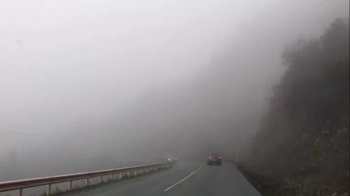 随着车子开上了巴郎山,雾气越来越大,到了后头,可见度基本不到十米。牛师傅一边打开双黄灯,一边安慰我们说,过了巴郎山隧道就好了,通常这边是大雾,那边是晴朗,隧道两头是不同的世界。