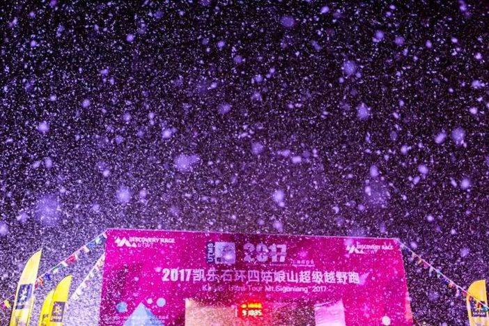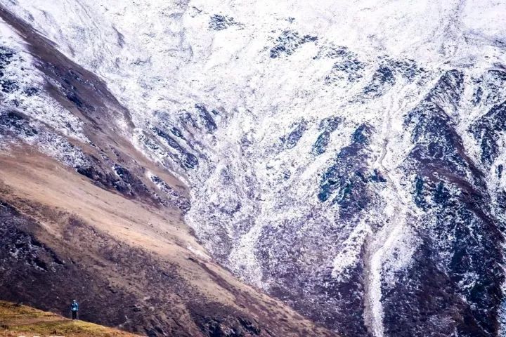 一路逆着地心引力踏雪而行,到达CP2也是赛道最高点——八角棚海,海拔4431米,帐篷外天寒地冻,据说当时气温是零下9度,帐篷内我吃着热腾腾的乌冬面,跟另一个外国选手打招呼: “hey, you are fast! ”然后先他一步出发,当时我并不知道他是立陶宛越野跑大神GG——2016年超级越野跑世界巡回赛UTWT的总冠军!后来分明觉得这句话应该是他对我说才合理。