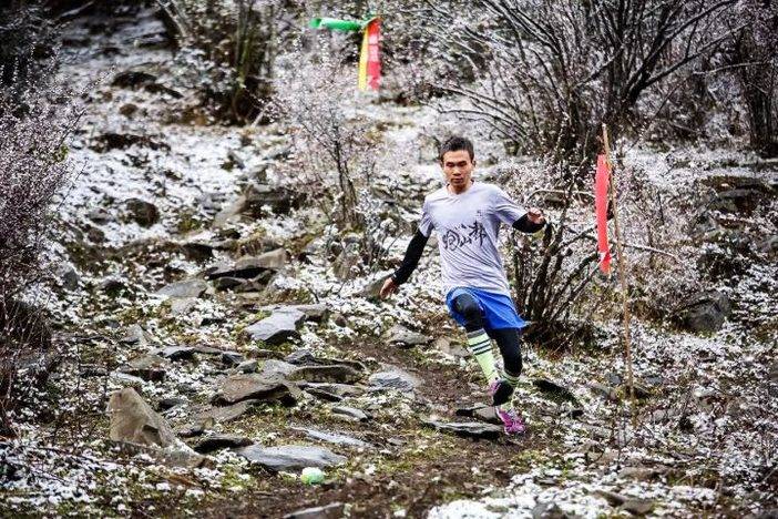 我跟小宇结伴跑在前往打尖包的路上,他是去年60km组的冠军,今年参加大神云集的100公里组,同样踌躇满志。这一段路我们跑得很舒服,气温零下3度左右,但并不觉得冷,呼吸顺畅,心率平缓,我们一边跑一边聊天,他认为我66km10小时能够完赛,我认为他105km16小时能够完赛,相互鼓励——只不过我们远远低估了这次赛道的难度,不对,应该说绝大多数人都低估了这次赛道的难度。