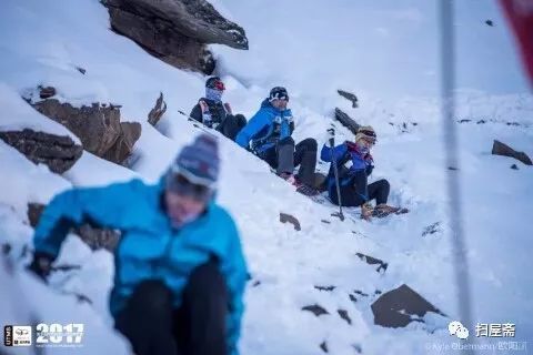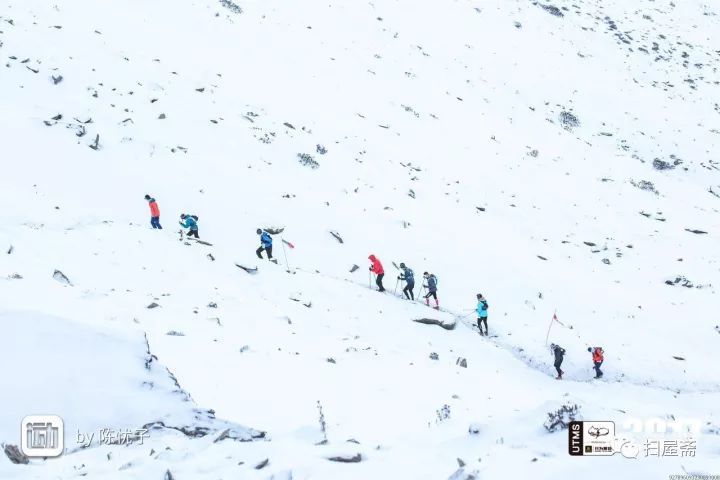 缓慢而坚定的一步步向上爬。赛道所在整个线路都处于山的背阴面,还好都没有起风。这种高海拔,雪线之上,大家又都是越野跑简易装备,如果遇到刮风,后果肯定不堪设想,绝对失温冻伤一大片。所以高海拔越野保暖和防风的装备一定要准备好。
