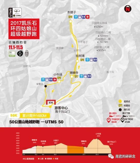 哈巴的登顶让我有了前行的信心,再加上无数次的回想在哈巴雪山顶上,天地间壮美无言的景观,在云端的感觉,在天与地之间的雪山顶上的迷人呼吸,2017年我壮胆报了四姑娘山越野50公里组别的。