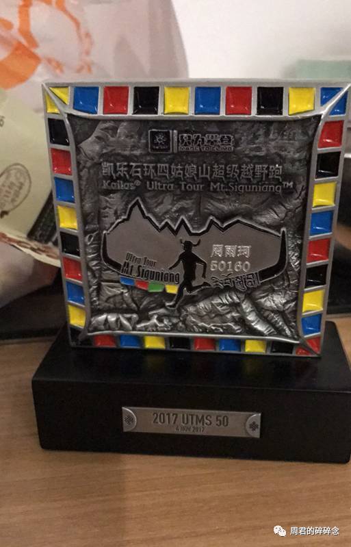 期间我最长的一次跑了9公里,于是在越野大群里得瑟:我跑了9公里啦!急的朋友私聊我:君姐,大神如许,我们的9公里小群说好吗?于是我们有了个群叫:“跑了9公里”,以后,但凡有人问群名原由,我总是沮丧中又有些小趣味,最后我们还设计了LOGO,有了队服,象模象样,但我依然不喜欢跑步,只喜欢快走,我只是加强了爬山的强度。对于50公里越野我一直是忐忑的。我想就当我是来玩的,能登上二峰,那也算是有收获了。