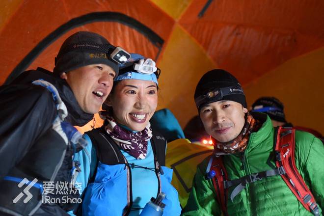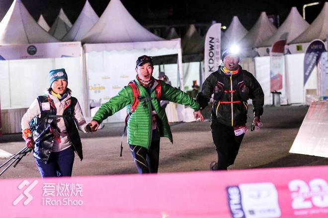 大概凌晨6点左右我终于来到了八角棚海CP2,热情的志愿者们招呼我们几个队员进帐篷给我们送吃的喝的,还给我们拍照合影,后来女子100公里组最快的珊瑚也进到帐篷,这次一路上遇到了很多实力选手也是庆幸,让我意识到了自身的差距。短暂停留了3分钟左右我们离开了温暖的补给点,开始朝前方一大片雪原地带跑去。
