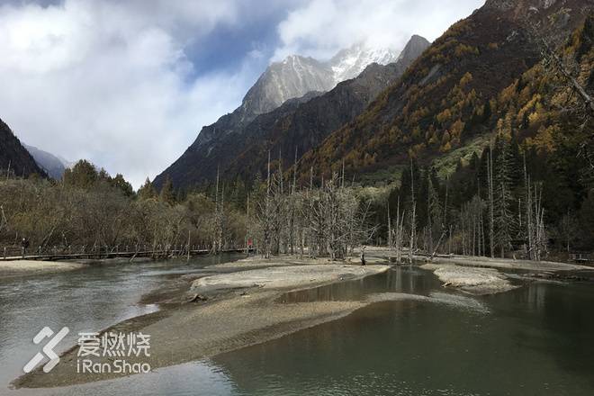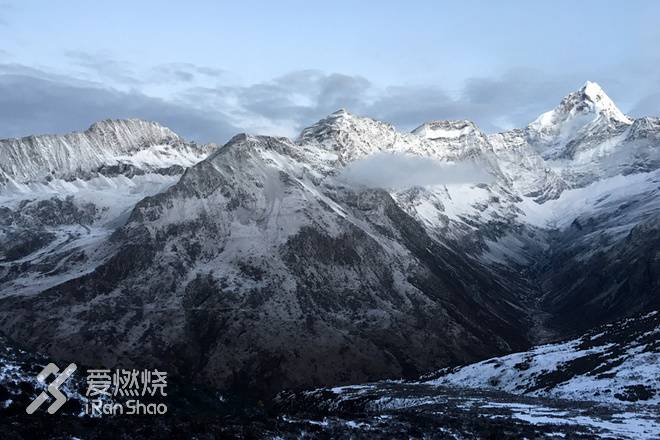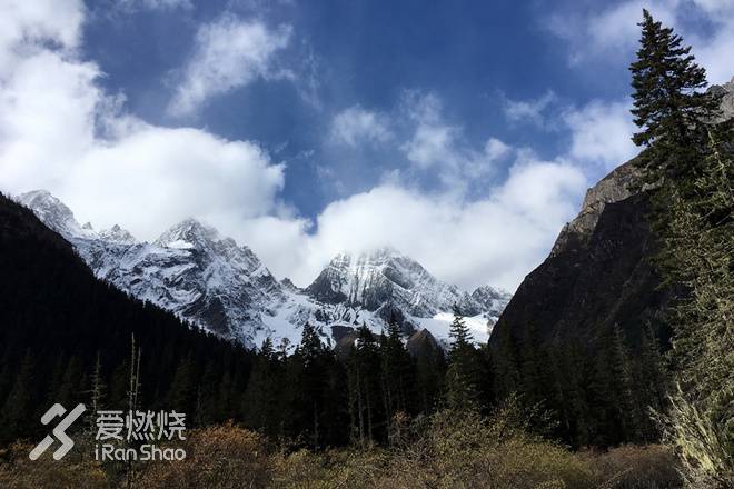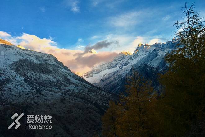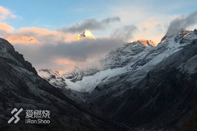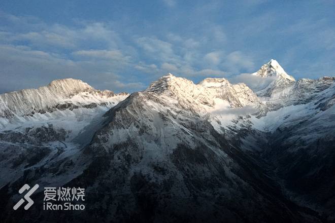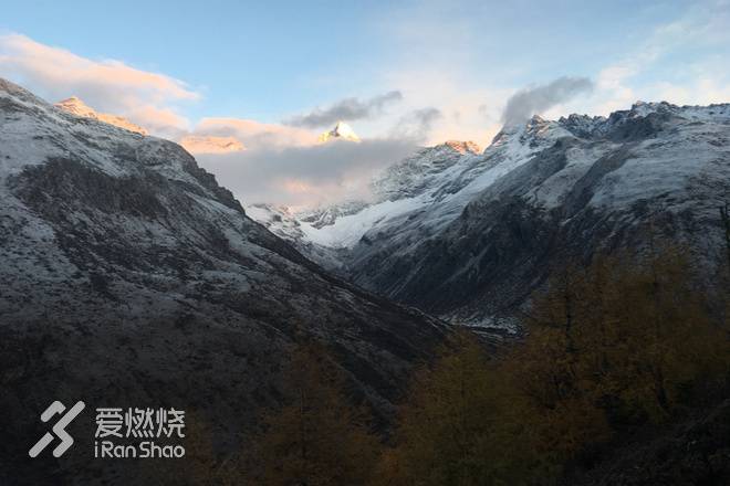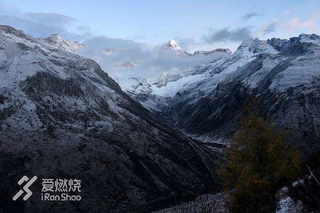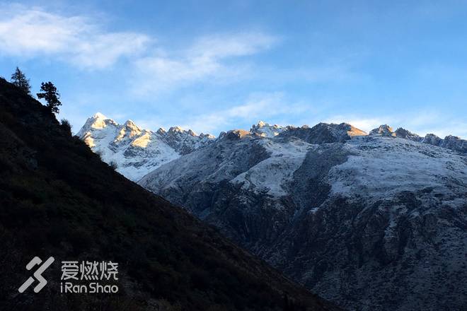 此时大约早上7点钟,对面四姑娘山反射着圣洁的白光,清晰的展现出了她们冷艳的姿色,我被深深的吸引停下脚步,眼中已被那无与伦比的美所填满。