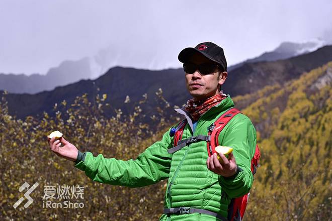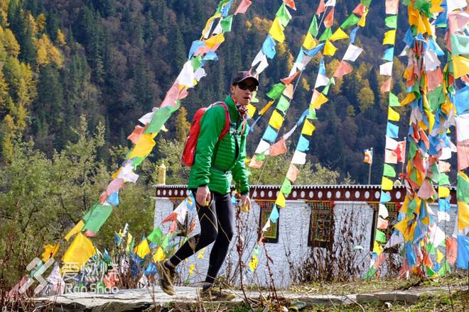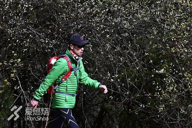 在喇嘛寺补给点我没有吃其他东西,拿了几块苹果便开始赶路了,绕过喇嘛寺右侧的彩色经幡朝山上走。五彩的经幡在阳光下舞动着,整个人感觉也仿佛变来轻快了许多,经幡将我引向了后面的丛林之中,开始了今天第三段高落差爬升。