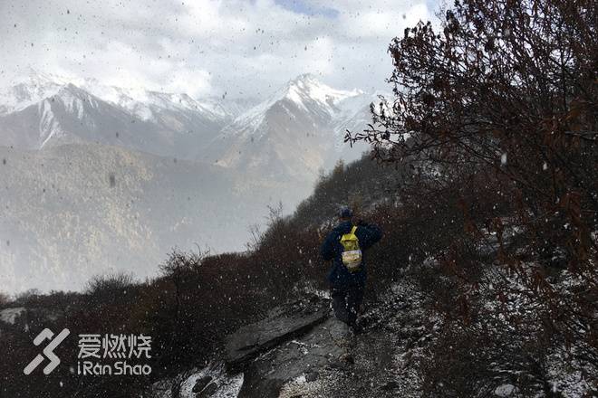 三、彩色经幡舞,逆光大雪飞,漫长小牛场,双脚裸伤行,携手破线冲(喇嘛寺CP7(3475M)——小牛场CP8(4095M)——分岔口——游客中心(3250M),距离14.9公里,行程总数65.7公里)