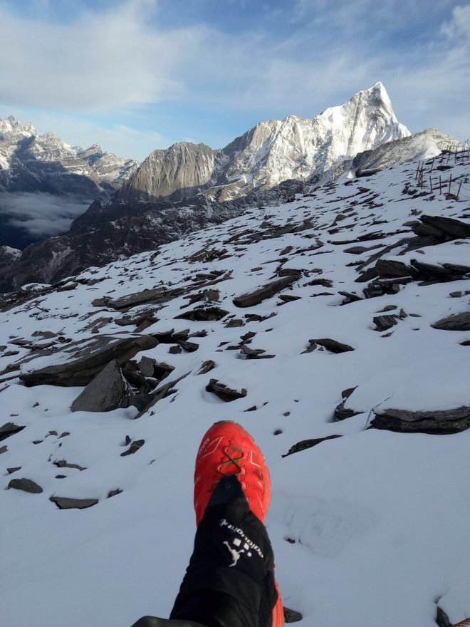 4、不足地方:保暖性能一般,当然这不是跑鞋所要追求的,应该是本人吹毛求疵了。登顶大峰的过程,本人穿了两双袜子,还是感觉到脚趾头受冻;登顶二峰的时候,在穿了两双袜子的基础上,在脚底脚趾处各贴了一块暖宝宝,才改善了登山过程中脚趾头末梢神经的敏感性,终于变暖和了。