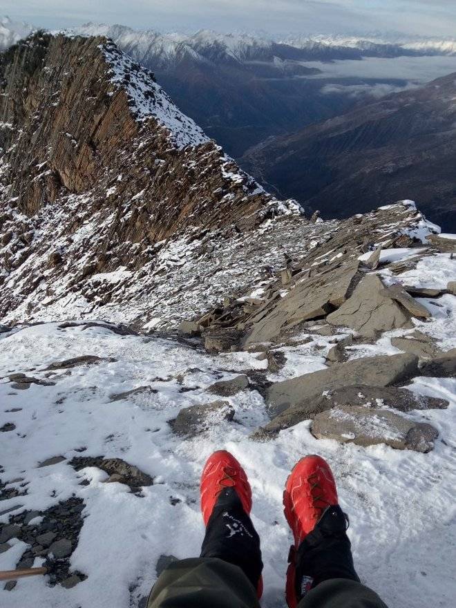 GORE-TEX防水透气科技是这双鞋子逼格满满的地方。登顶四姑娘大峰、二峰,在雪线以上,鞋子经常要踏入齐过脚踝的浮雪中,雪水融化后,鞋面依旧如新,鞋内没有任何湿润感觉,如果不防水,袜子打湿了,高海拔湿冷环境下,脚就有冻伤的风险。