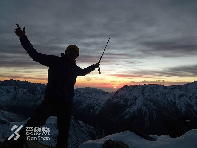 凌晨四点出发,月光皎洁,伴着满天繁星,踏着石海,一路风平浪静,三个小时后,紧跟向导之后,第一个站上山顶,迎接7点1刻四姑娘山大峰的第一缕阳光。