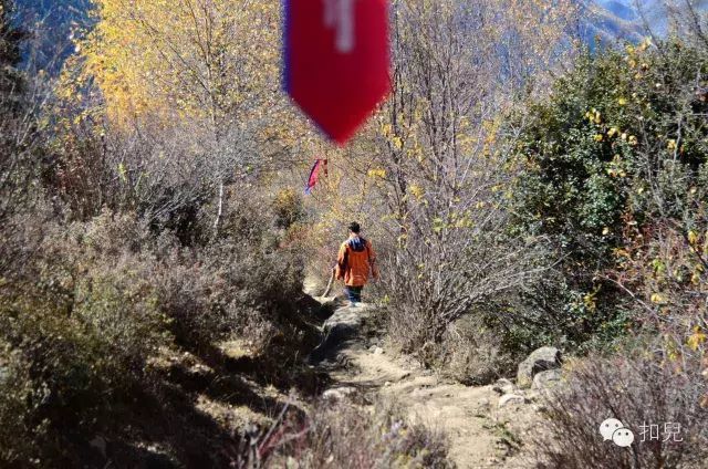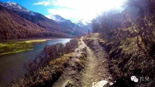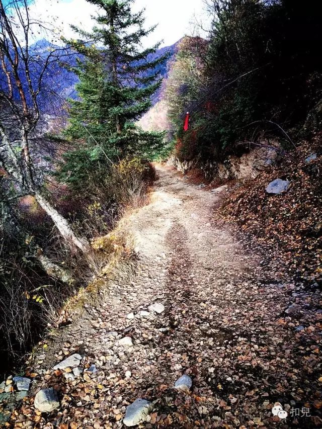 马道坑坑包包蜿蜒拉长在灌木矮丛或针叶林里,强烈的紫外线吸干了土地的水分,扑面而来的灰层导致每个队员之间要不并肩,要不就能隔好远隔好远,遇到前面有骑马的或者牵马上山的藏民就只有避到山坡上,头巾捂到嘴巴又出不赢气,拉开又吃灰,咋个都没对。午后的太阳晒起有点出毛毛汗,寇起冲锋衣帽子有点热,拉开又风蒿蒿滴,也是咋个都不对。一路上就寇起又拉开,拉开再寇起……