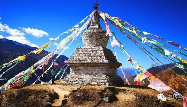 肃穆的白塔和斑斓的经幡是藏区特有的风景,映在高原深秋的蓝天下那份虔诚和恭敬越加无与伦比。