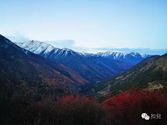 雪峰覆盖连绵青山,一望无际的彩林渐渐成型。