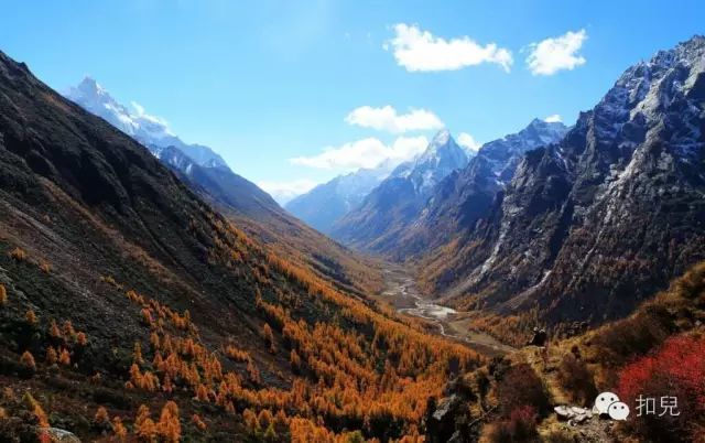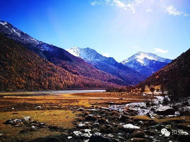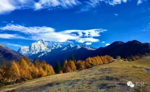 高原草甸厚实密匝,针叶林泛起靓黄的色泽,连绵大山宁静深邃,四个妹妹远离城嚣,巍峨俊美,天空湛蓝悠远,云朵自在飘逸,紫外线喧哗放肆,山风柔和轻缓,想不沉醉其中怕是都不容易哦!