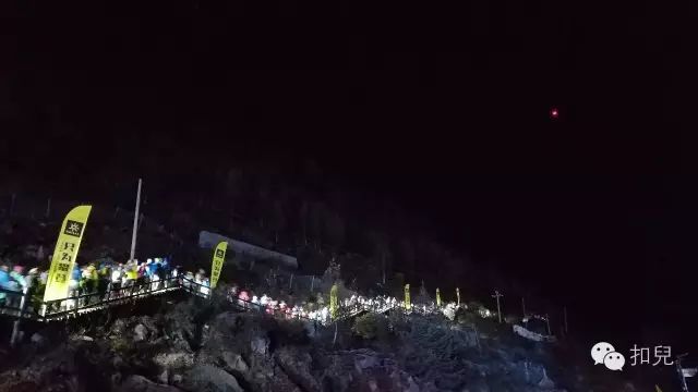 顺到木栈道,嘿佐嘿佐排队往上爬,爬出切就晓得各人穿多了,Z字型爬完就赶紧梭到一边脱冲锋裤,头灯一晃一晃看不清那个是那个,各人mi到脑壳前进,第一个CP站打尖包,7.6公里,2小时10分的关门时间对于我这个越野菜鸽子来说还是稍微有点紧。昨天队长就强调过,不要在路上东一哈西一哈的闲晃,要不然等哈还没拢打尖包就遭关门了就瓜起了哈。