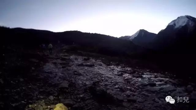 打尖包到大本营的路,缓上坡,绵延悠长,天开始麻麻亮,雪峰越来越清晰,一路上碰到路上越野的熟面孔,山间的晨曦冷冽的气温,海拔渐渐攀升,噗呲噗呲的脚步声,清脆的登山杖敲击着地面或石块,夹杂到一哈轻一哈又重的呼吸声,大家都没得精神开腔,爬得来闭声闭气。