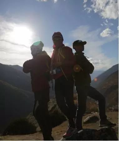 15:50到打尖包距17:00只有70分钟了,没敢多停留,喝水拿了苹果就出发了。一位穿着短裤队友跑着追上来,状态好呀还能跑。我说这回程路上你是第二位超过我的呀!他停下来陪我走一会,聊聊加了微信。生活在南京的四川人,珠峰上的石头,去年参赛,今年又来,拉肚子直到大黄棚才好些,才能跑起来。他说按1小时7KM的配速12小时内可以完赛。