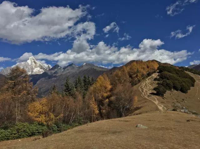 赛道适应。简单早餐后,是开幕式,马老师的牛角帽引人注目。活动结束后,回到镇上提前吃了午饭才进山。在栈道上碰到格格,已经走了一趟返回。这次过了朝山坪,白塔周围的经幡随风舞动。不远处有选手躺在草地上,晒太阳、聊天。