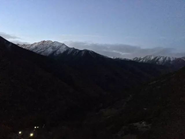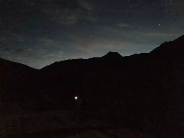 第一赛段,起点到打尖包,7.6公里,580米爬升。到海子沟山门是接近500米的栈道,接着转入狭窄的土路,透过头灯的光,飞扬的尘土扑面而来。4公里左右,看到上次在祁连山很长一段时间在前面跑姿很帅的女孩子,打了招呼,出现开阔路面,一溜小跑开始超车,再次看到她已经是在打尖包。往前进入到树林,是更坑坑洼洼的马道。远处山的一边已泛白光,前面传来了加油声,6点40分抵达打尖包,用时1小时40分。喝了两小杯红糖水,休整时脱下了手套,不到10分钟,出发时手指已冻得发痛。东边天空有颗很亮的星星,现在想来应该是启明星。