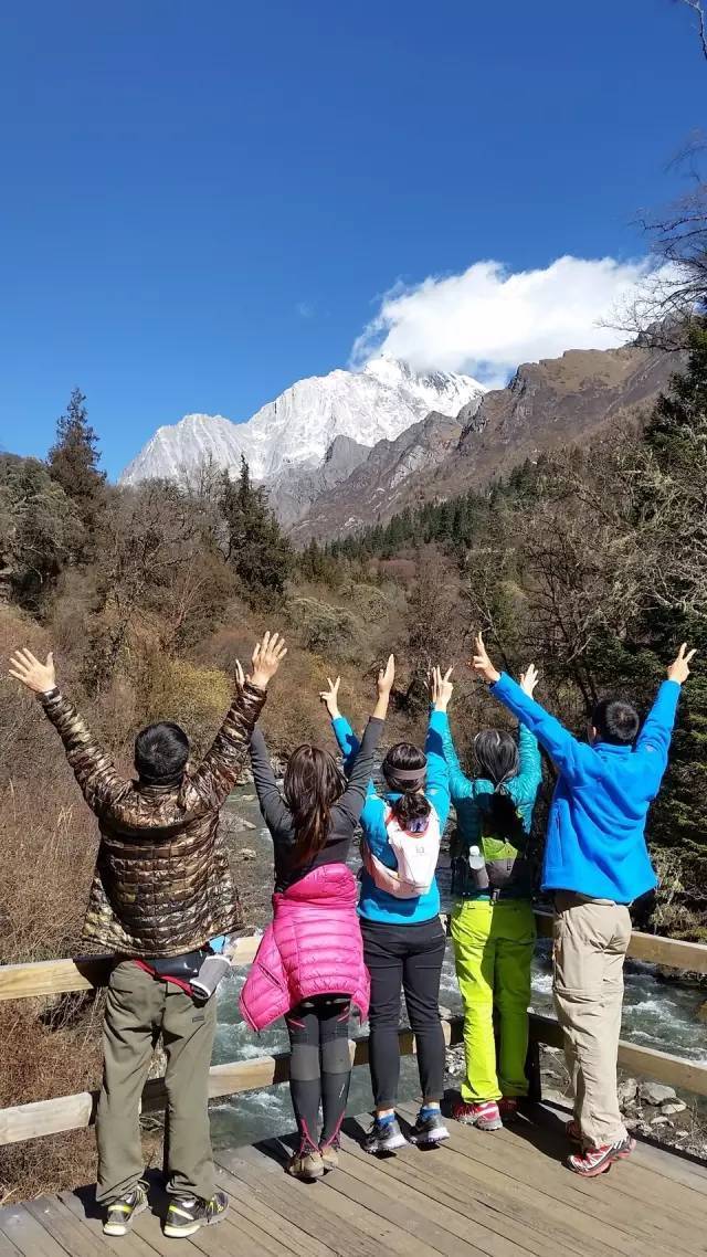 五号早上五点半起床出发,认识了一群特别棒的,我们“吃喝玩乐美”小分队的小伙伴们。一行人来到郭庄坪看日出,被四姑娘山的日出美景美到了。