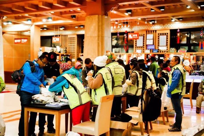 每个人怀着不同的心情,不同的目标来到同一个地方,等待着比赛号角的吹起。志愿者们仔细的检查选手们的强制装备,每一句询问,每一个翻看的动作,都能感受到他们的认真,能够让人感受到组委会对每个选手人身安全的重视,让我想起了前一天,组委会在赛前技术交流会上说的一句话,“对大自然我们要心存敬畏”我们可以挑战它,但却不能无视他它,要做好最充分的准备。所有小看它的人,终将会受到他最无情的惩罚。在此特别感谢黄龙大秘书,在赛前不厌其烦的为我讲解装备的作用及重要性。