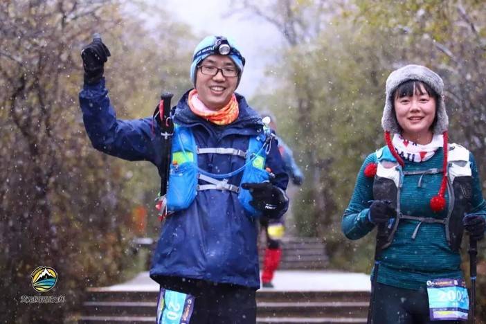 随着号角声的响起,参赛者们也踏出了出征的步伐,我们向着黄龙景区的山顶冲去……应该说天公作美吧,在跑到半山腰的时候,居然下起了小雪,紧张的比赛忽然间有了一丝浪漫的气息。