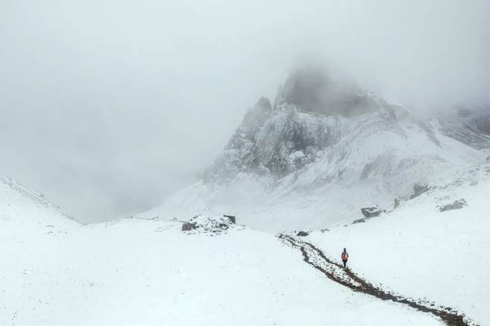 第一次见到这样的景色,既被其美丽壮阔吸引震撼,有又因其险峻恶劣心生敬畏。这就是我们要征服的垭口雪山。深吸一口气,怀着复杂的心情,一头扎入了茫茫雪山之中!我知道考验才刚刚开始……