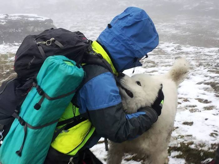 爬升中又超过一些童靴,抬头之间,猛然看到一只浑圆白胖毛绒绒的身影,二哥的宝大家的宝5岁的胖来福,你也有胆儿来冲顶?出发前咋没见着你?单身的任性狗子啊。性格!