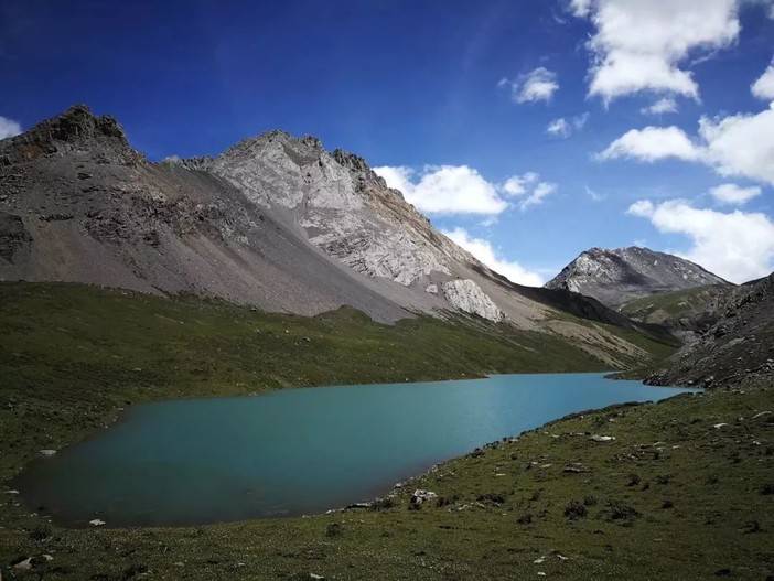 再往上走翻过海拔4417的垭口,下行一段,就到了CP4/SP3长海子的球形帐蓬,打卡,准备补充热食。