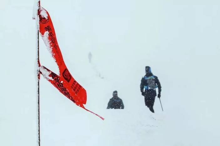 能不能捱到长海子?海子?在哪里,想必已隐匿在茫茫大雪之中了吧。到达此点继续延续1小时的冗余时间。