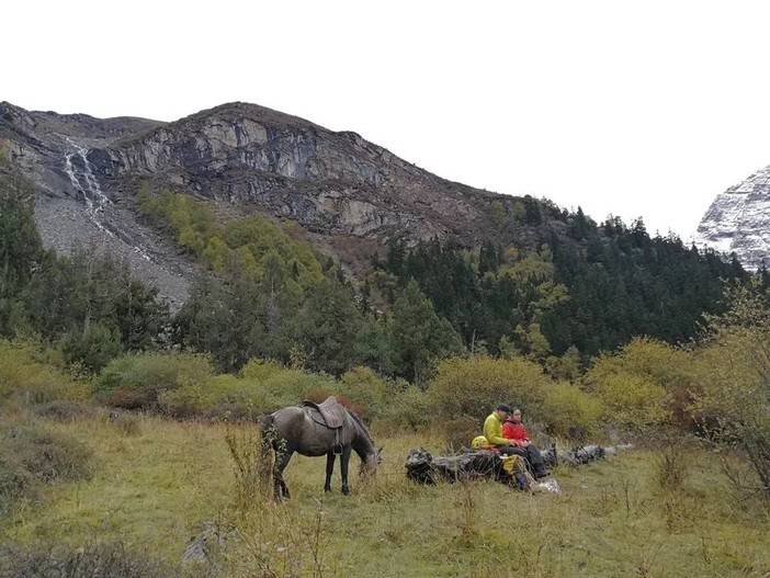 10月5日早上10:00,告别都日峰告别大本营,慢慢走下绝望坡,来到3900营地,骑上自己特地租来的大马,背着行囊,摇摇晃晃下山去。