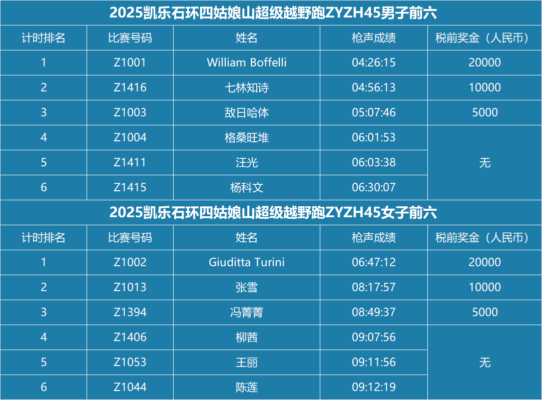 ZYZH45奖金选手信息收集|2025凯乐石环四姑娘山超级越野跑 [复制链接]