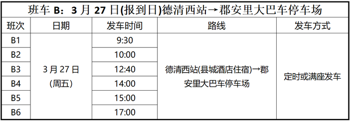 班车B:3月27日(报到日)德清西站→莫干山中心校