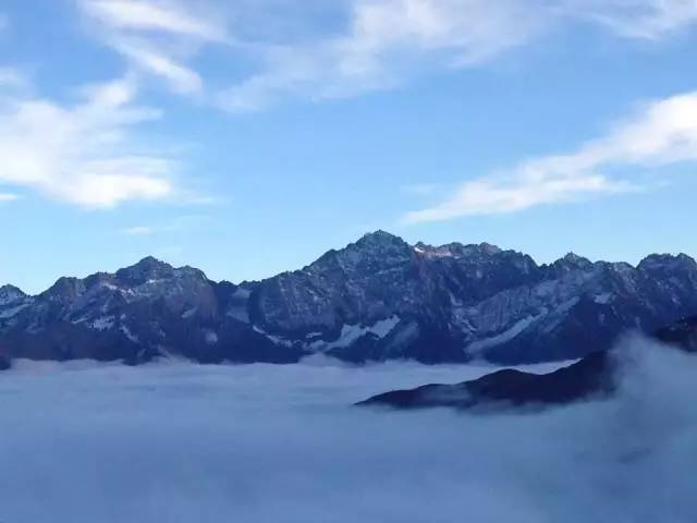 十一月四号跟随大部队出发去的四姑娘山。一路漫长颠簸的车程,加上弯多海拔高,一直都有点头晕。但是当看到巴郎山云海的时候,所有的不痛快都消失了,一切都太美了!