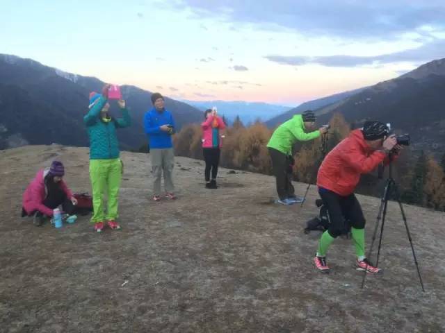 顶着满天星星出发,感觉特别浪漫。比赛前就跟勇哥说过,我们安全第一。我们慢慢爬山,拍照看美景。因为怕高反,所以上坡都特别慢特别小心,没怎么用过手杖的我,全程上坡都在用。由于前一天大姨妈来了,所以基本上每个打卡点我首先找的是厕所。