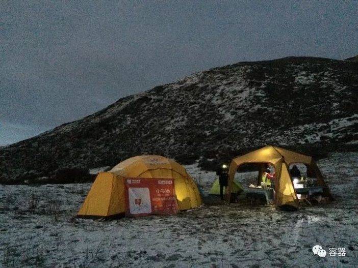 累翻,我没带手表猜着自己心率大概快200,一直向上一直向上的山路不知道要走多久,虽然知道一定有尽头一定有终点,但还是在漫天飞雪中觉得心烦气燥,一步一步挪向那个叫小牛场的CP(Check Point)点。好在,一个看起来糙糙的伙伴,细心地跟在我后面,不断的教我上山的方法,小步走、不要停、每一步把大腿绷直等等等等,重点不是这些话,是他一直用我缓慢的速度跟在我后面,尽管在我们到达之后,他还有近二十公里的路要走。就这样,在某一次抬头,眼中圆圆的黄色帐顶,宣告我爬升的结束。