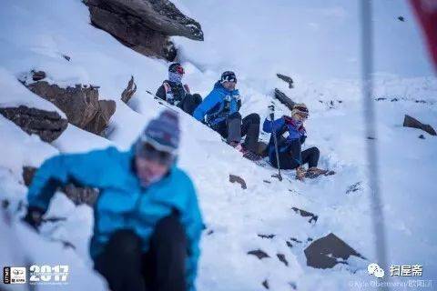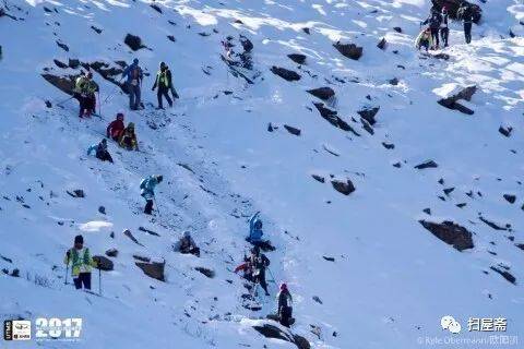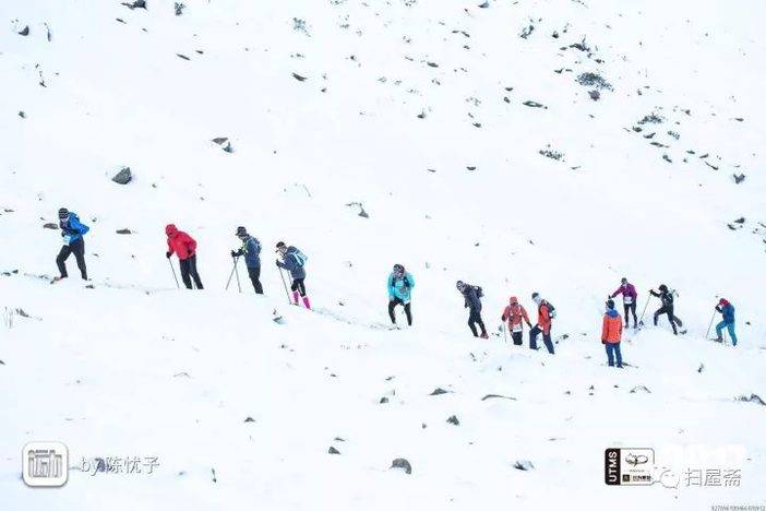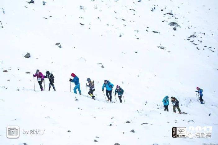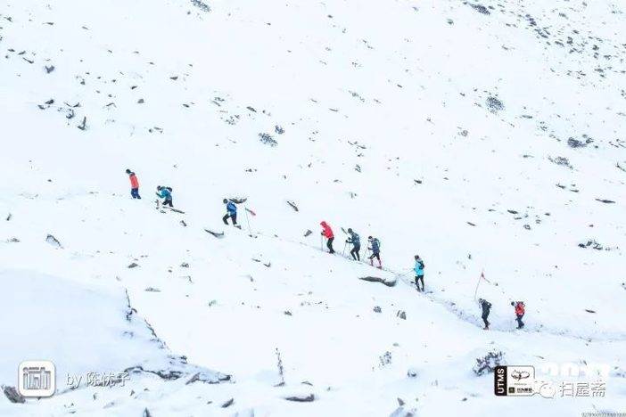 缓慢而坚定的一步步向上爬。赛道所在整个线路都处于山的背阴面,还好都没有起风。这种高海拔,雪线之上,大家又都是越野跑简易装备,如果遇到刮风,后果肯定不堪设想,绝对失温冻伤一大片。所以高海拔越野保暖和防风的装备一定要准备好。