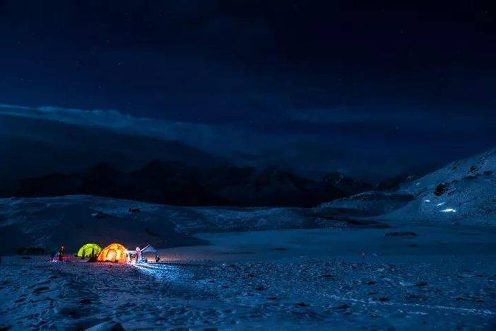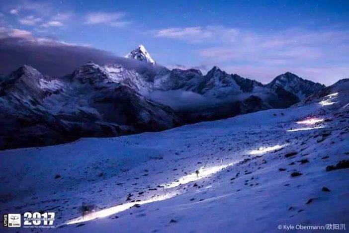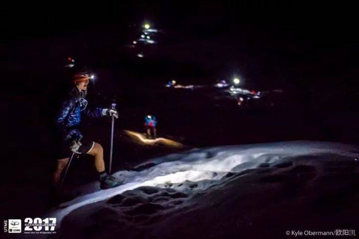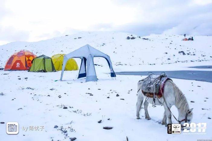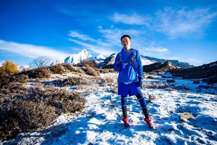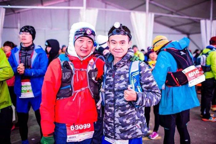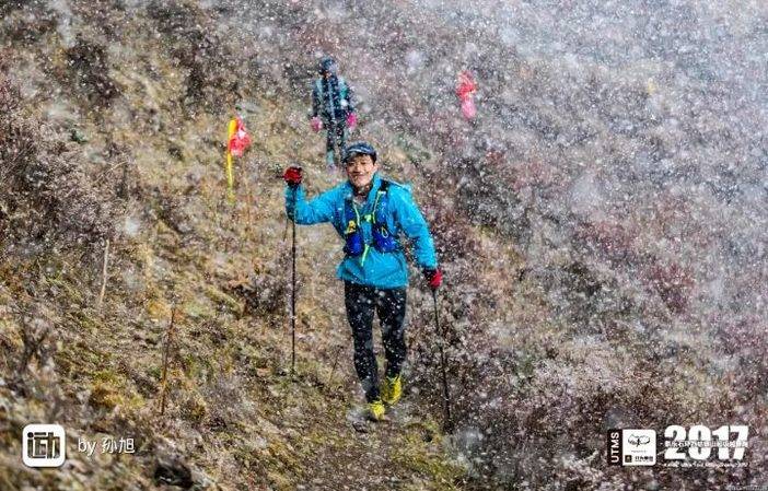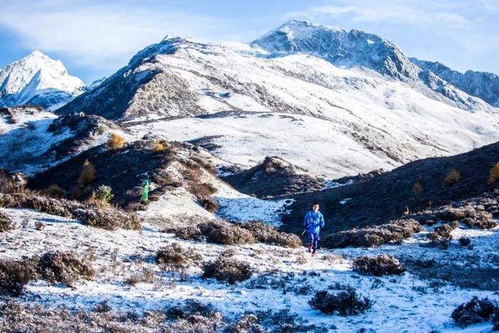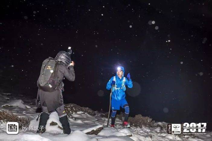 一路逆着地心引力踏雪而行,到达CP2也是赛道最高点——八角棚海,海拔4431米,帐篷外天寒地冻,据说当时气温是零下9度,帐篷内我吃着热腾腾的乌冬面,跟另一个外国选手打招呼: “hey, you are fast! ”然后先他一步出发,当时我并不知道他是立陶宛越野跑大神GG——2016年超级越野跑世界巡回赛UTWT的总冠军!后来分明觉得这句话应该是他对我说才合理。