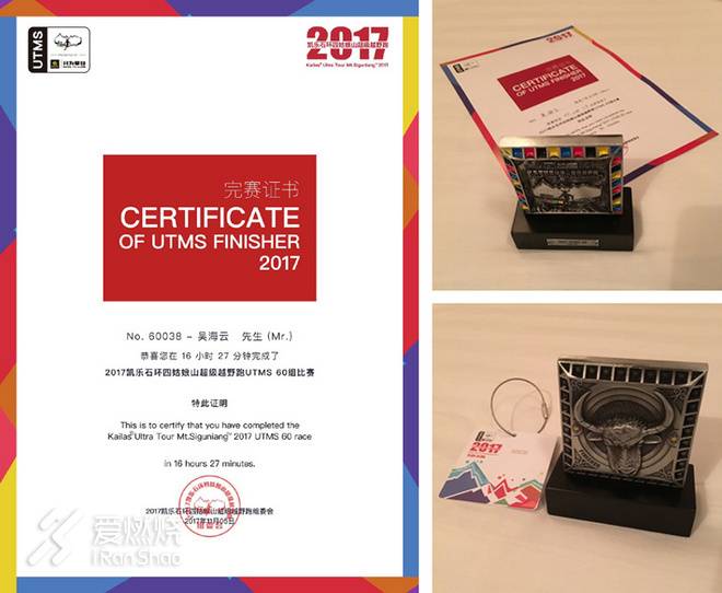 我与明哥一起带伤成功完赛,并意外的获得了60公里组别(实际65.7公里)第9名,虽然用时偏长近16个半小时,但是能进入前十已经完成了我的预期目标。作为第二次跑越野跑并几乎是裸跑的状态,因为我前一次越野跑是一年前的环四姑娘山超级越野跑42公里组,平时我从来没有跑过任何形式的野外练习,只是路跑锻炼一下,并且今年跑量少的可怜只有108公里,这次成功的完赛,一方面让我倍感欣喜,另一方面也让我终于经历了一次极限的体验,最终顺利完成目标,让这次越野跑赛深刻的印在心中,感谢山林眷顾,感动自己坚持!