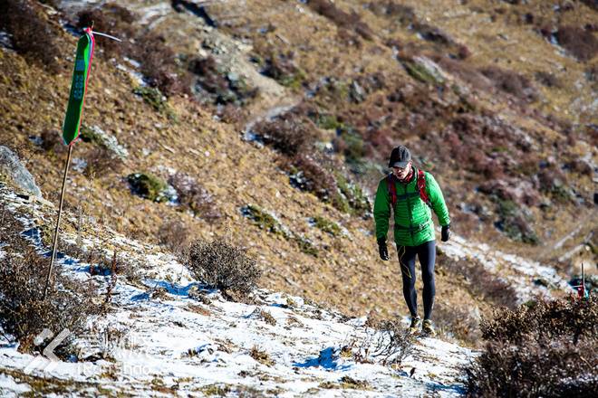 三、彩色经幡舞,逆光大雪飞,漫长小牛场,双脚裸伤行,携手破线冲(喇嘛寺CP7(3475M)——小牛场CP8(4095M)——分岔口——游客中心(3250M),距离14.9公里,行程总数65.7公里)
