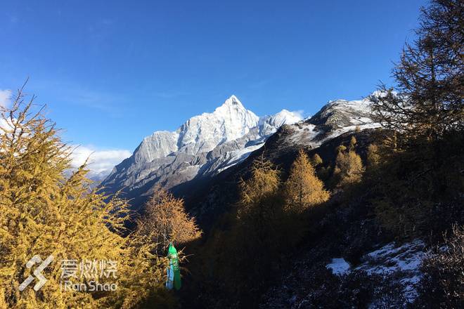 此时大约早上7点钟,对面四姑娘山反射着圣洁的白光,清晰的展现出了她们冷艳的姿色,我被深深的吸引停下脚步,眼中已被那无与伦比的美所填满。