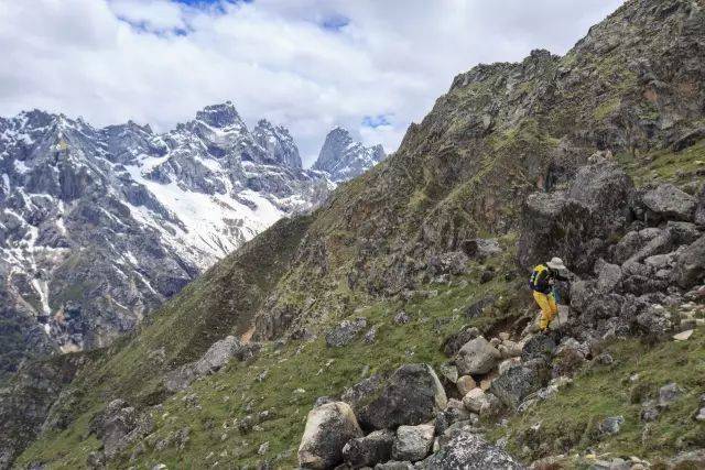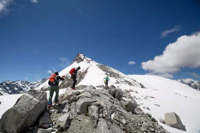 长沟营地à长沟垭口,这段因为当天道路有修整,所以路径清晰,路面状况良好,急剧爬升加之高原反应,移动缓慢。接近最高点的时候有积雪。当天天气状况良好,经过落石危险路段的时候还算顺利。