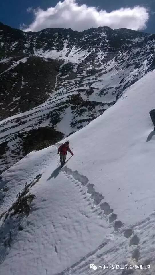 这是垭口至顶峰的路段,照片摄影时间是12月底,11月比赛期间的积雪会较少。但四姑娘山区不排除会有突然降雪情况,如果下大雪,组委会将会启动应急预案。