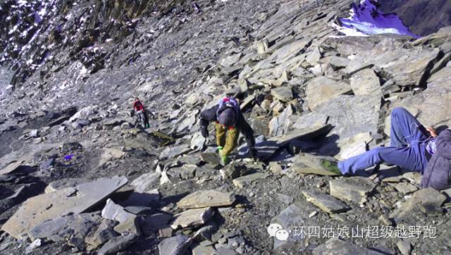 这是途中最陡峭的一段,碎石容易滑动,选手要拉开距离,小心落石,垭口位置将设置安全观察员。